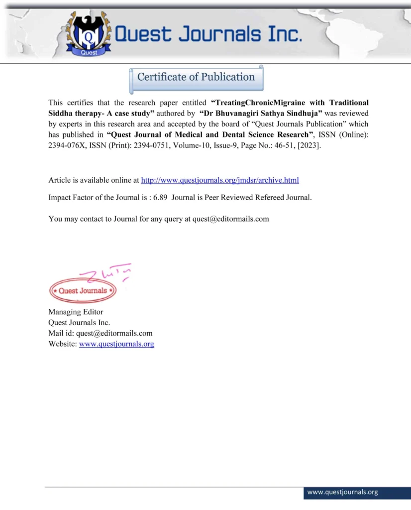 Dr. Sindhuja possesses a diverse range of expertise in holistic healing, encompassing the treatment of various illnesses and conditions, from common ailments to severe chronic illnesses. With her extensive knowledge and experience in Siddha Vidyam and holistic wellness practices, she offers personalized treatments tailored to address the unique needs of each individual. Through compassionate care, empowering education, and personalized treatments, Dr. Sindhuja facilitates a transformative journey for her clients. Her approach emphasizes holistic living, encompassing not only physical health but also mental, emotional, and spiritual well-being. By nurturing positive thoughts and emotions, adopting healthy lifestyle practices, and fostering a sense of connection with oneself and others, individuals can unlock their full potential for healing and growth.
